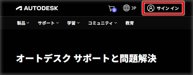 - オートデスク サポートと問題解決ページ( https://www.autodesk.com/jp/support )を開きます。