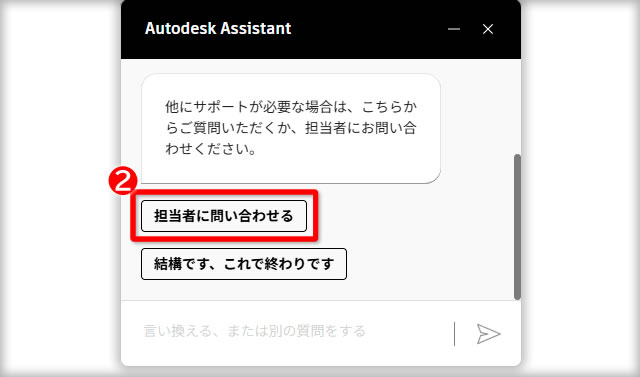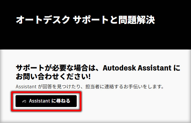 オートデスク サポートと問題解決ページ にある[Assistant に尋ねる]ボタンをクリックします。