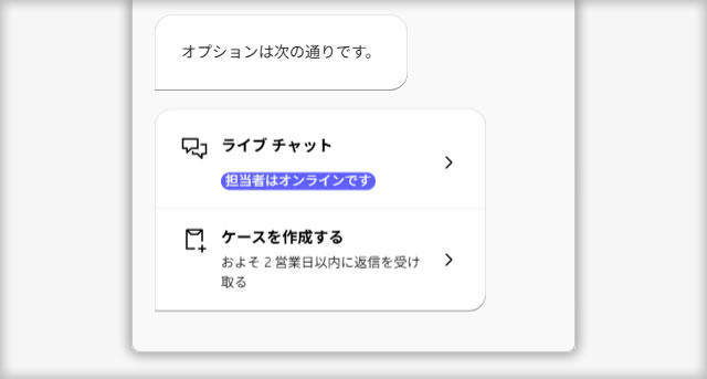 質問内容や製品、ご契約に応じて、表示されるオプションの数や種類が異なります。